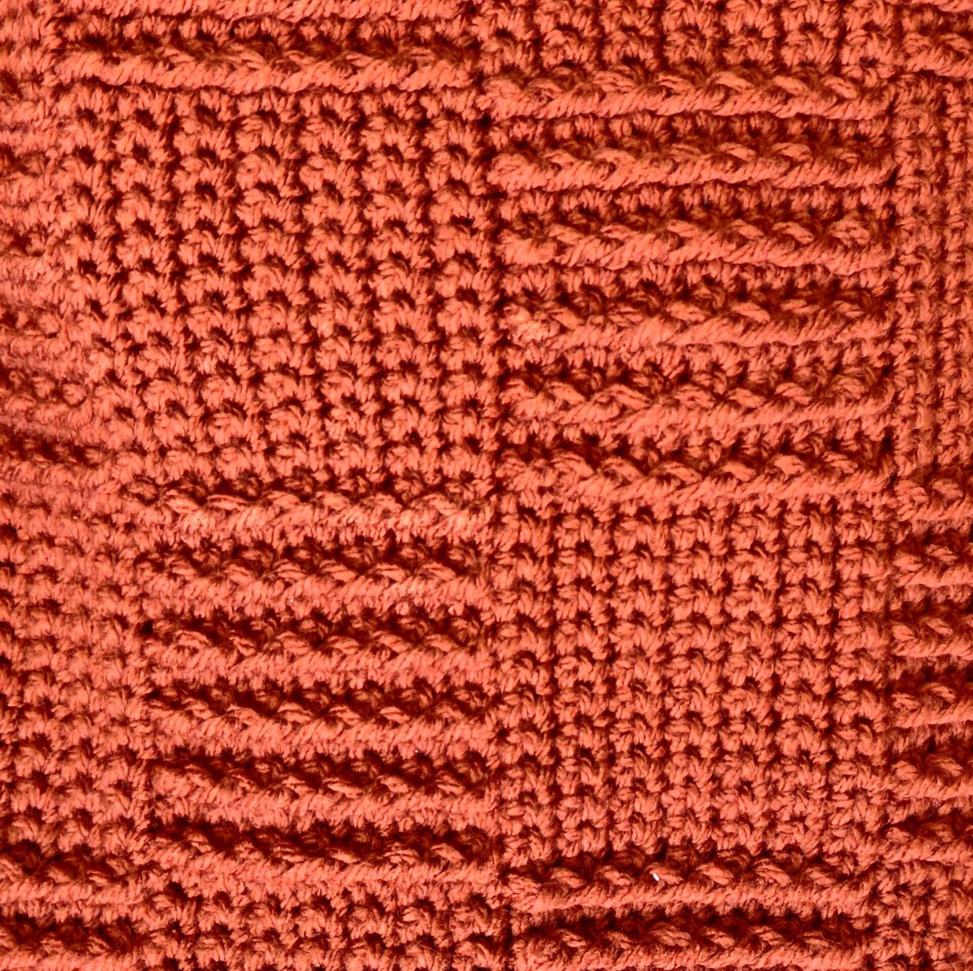 De kleur van de deken is roestbruin.