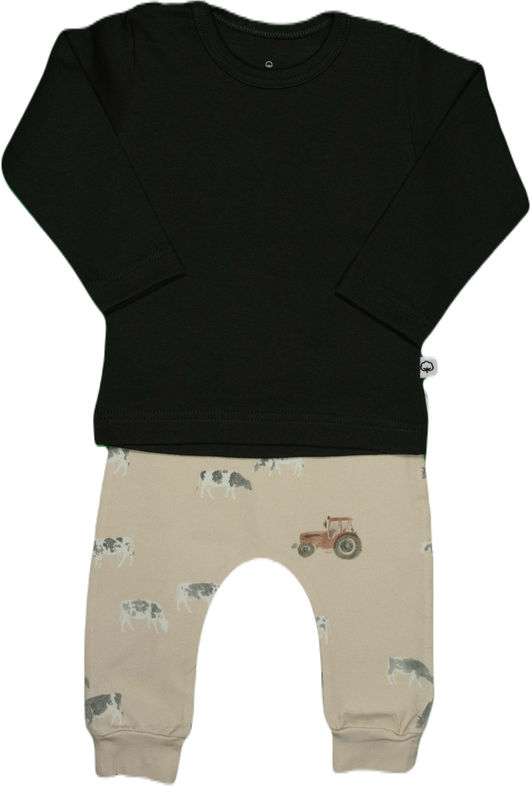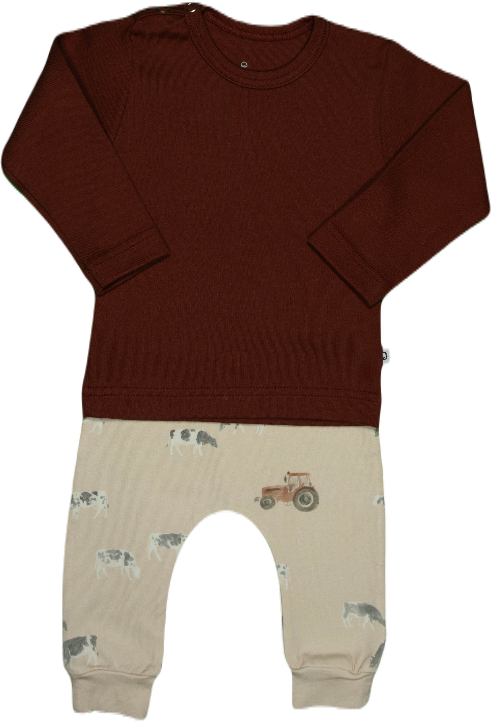 Een heerlijk broekje, wat grazende koeien en een echte tractor.