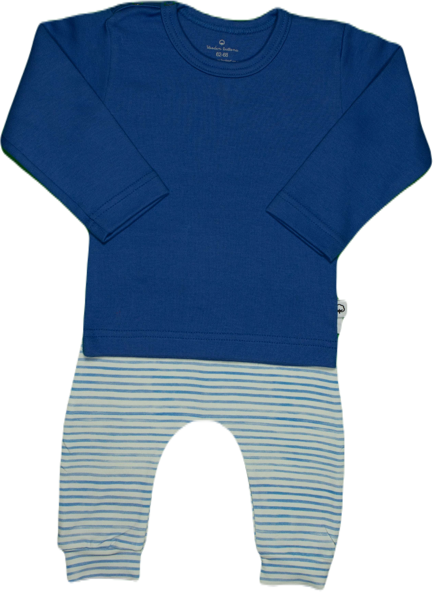 Een blauw gestreept zomers broekje.