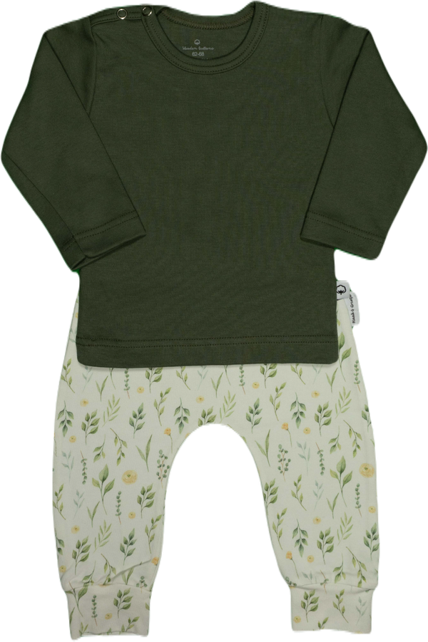 Er staan hele kleine gele Ranonkels op het broekje.