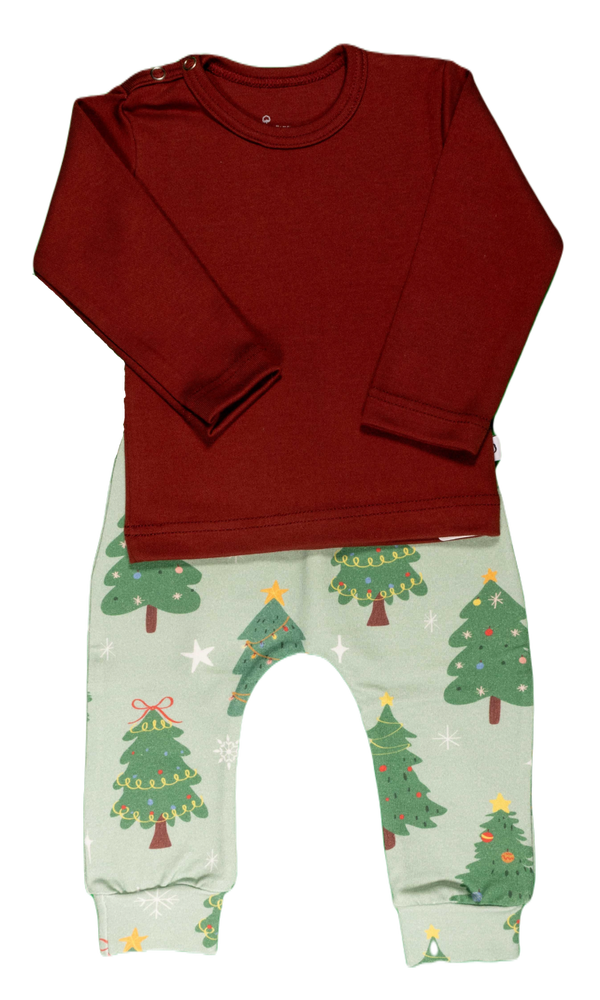 Vrolijke Kerstbomen staan verspreid over dit broekje.