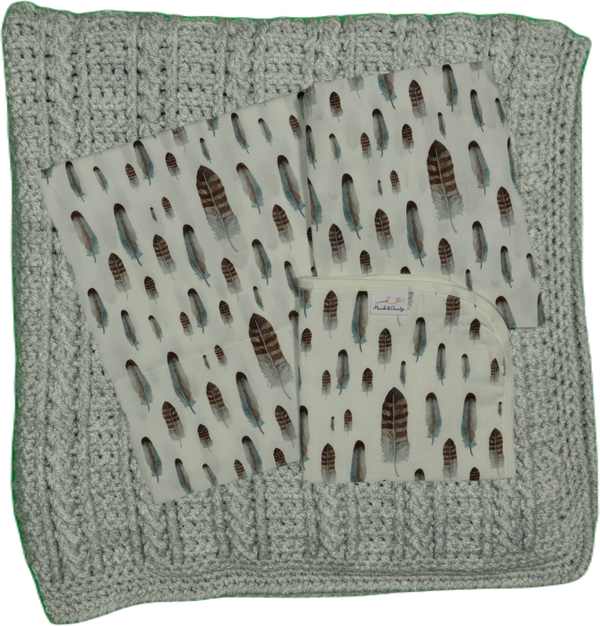 Bij dit setje is een gehaakte warme deken of een dunnere katoenen wafeldeken te krijgen.