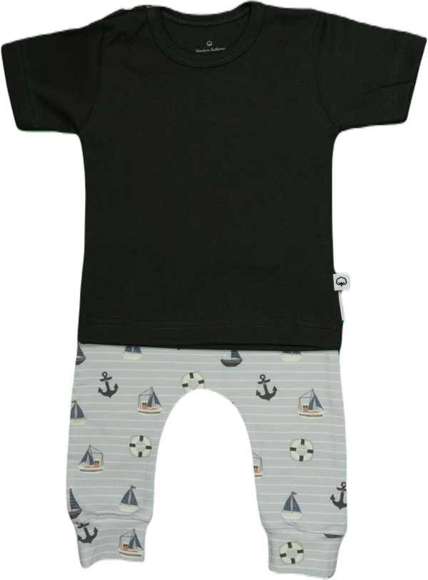 Effen shirtje van Wooden Buttons, antraciet, korte en lange mouw
