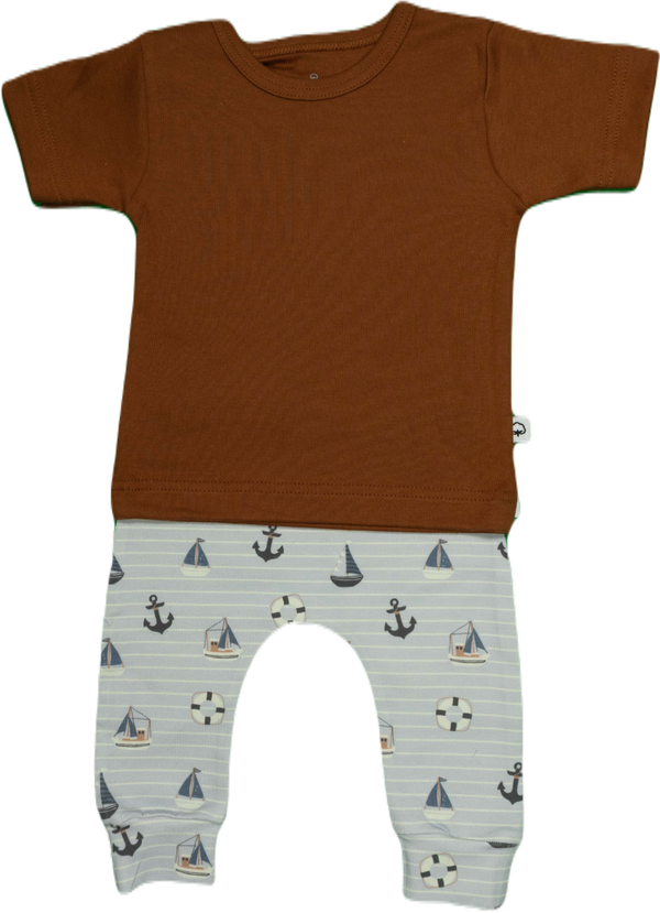 Effen shirtje van Wooden Buttons, cognac bruin, korte en lange