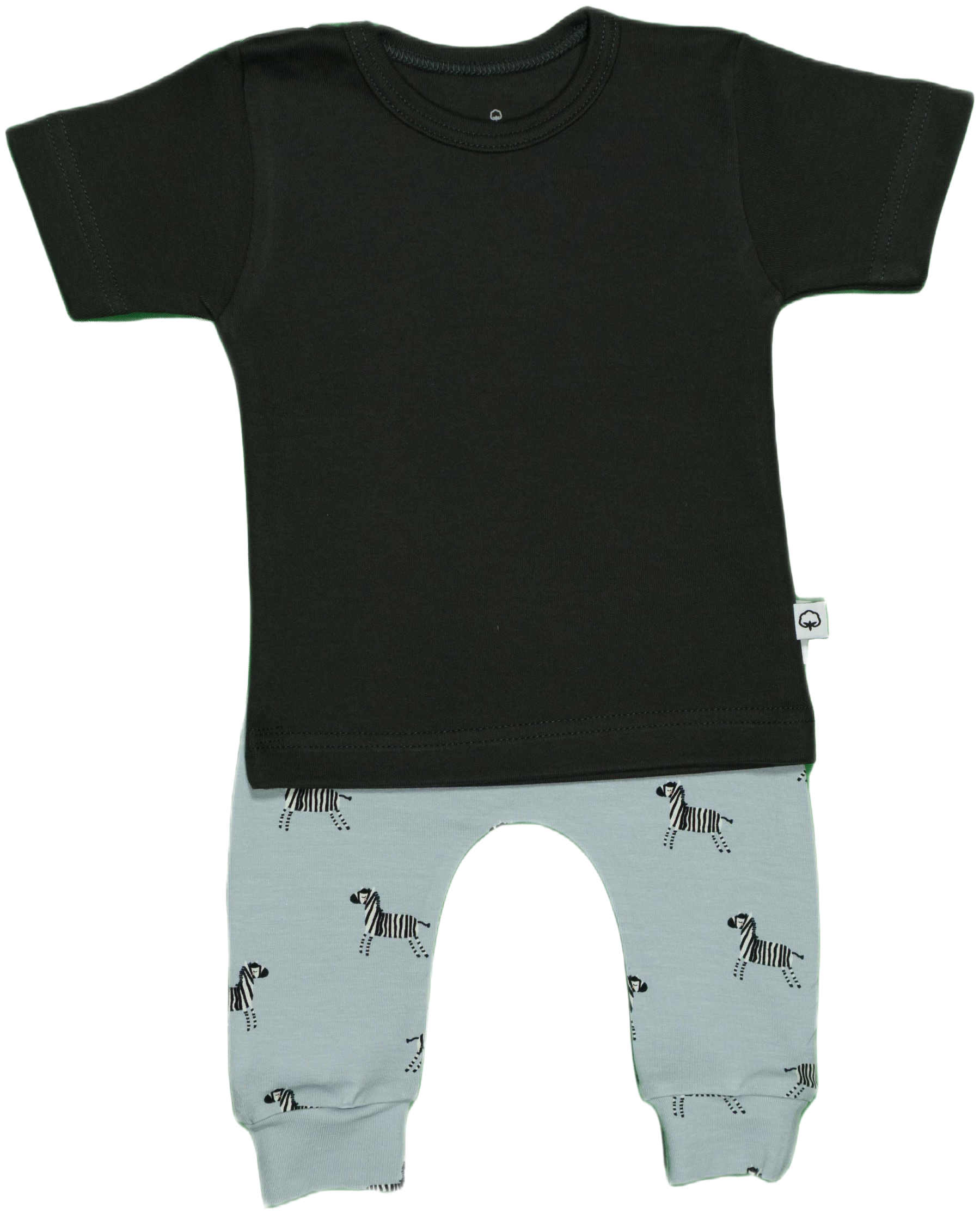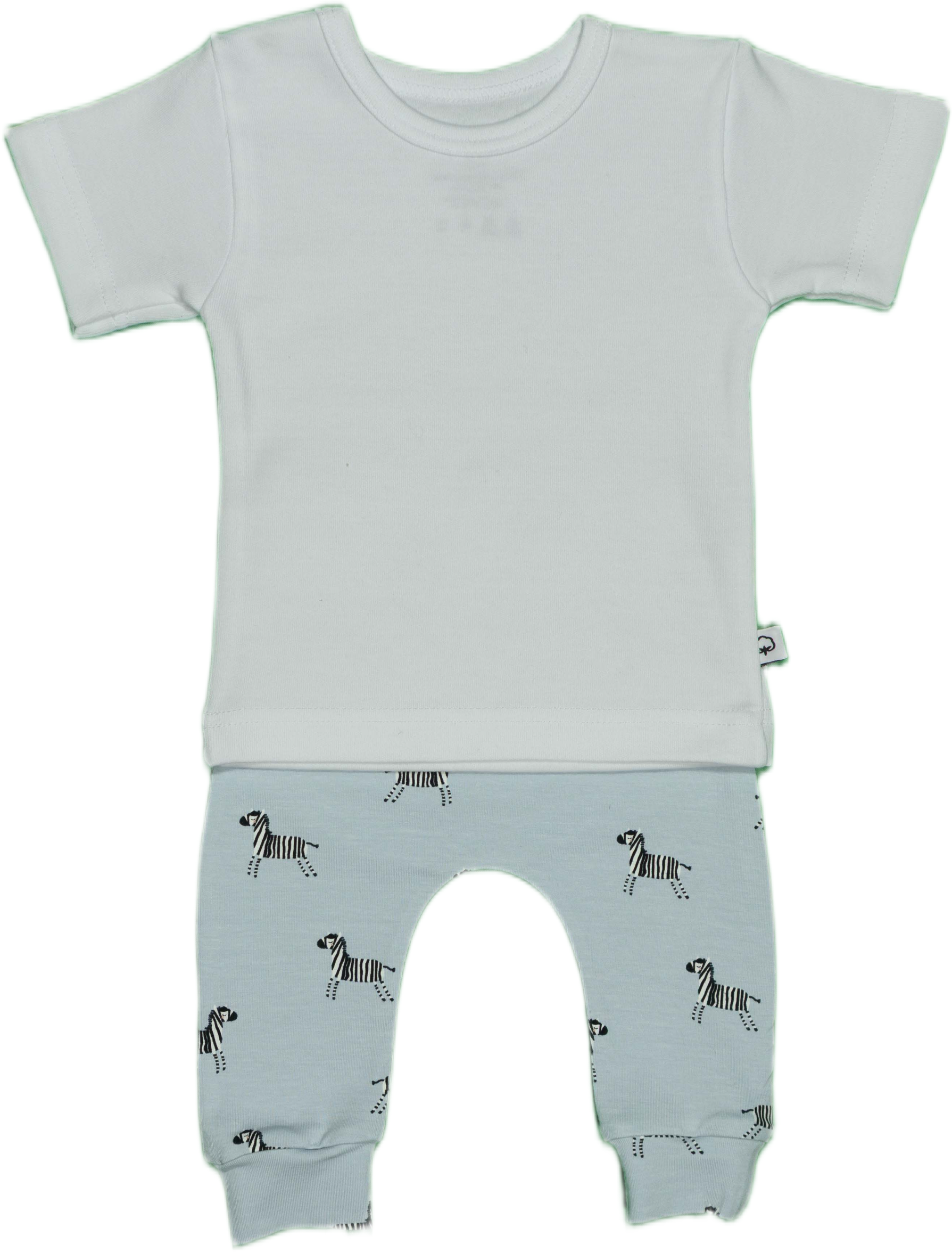 Een licht blauw tricot broekje met daarop prachtige zebra's