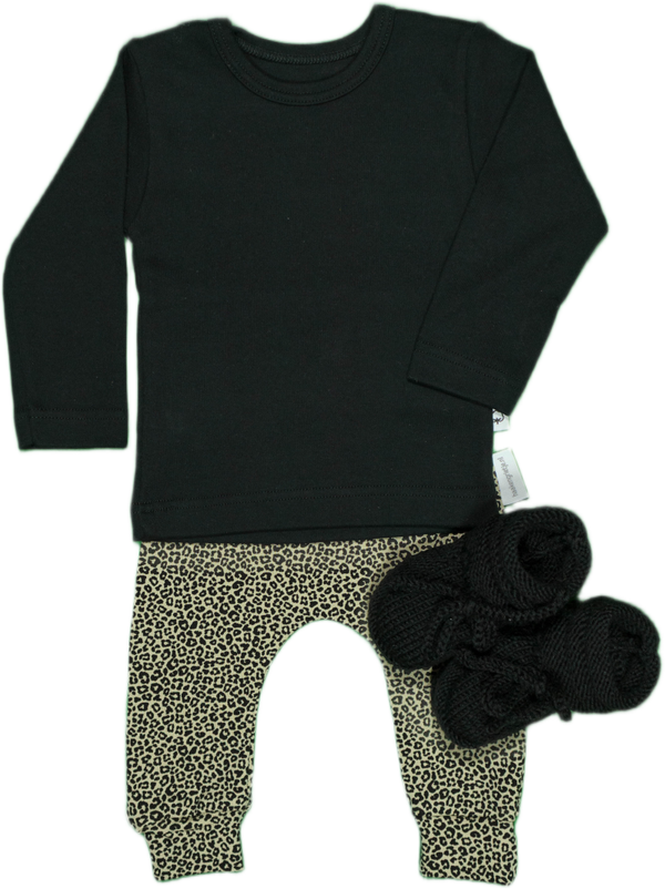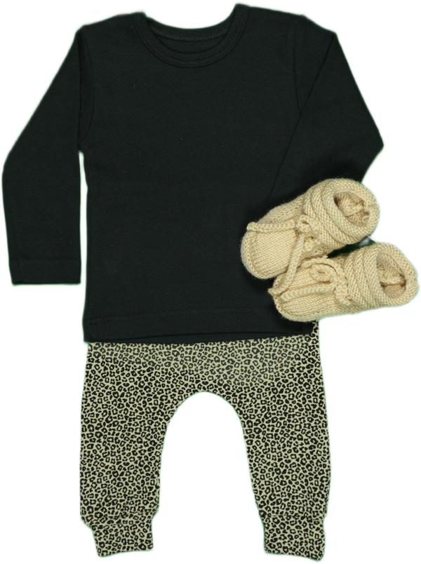 Een schattig broekje voor mini meisjes. De kleurstelling is zandkleurig met zwart vlekken van een panter.