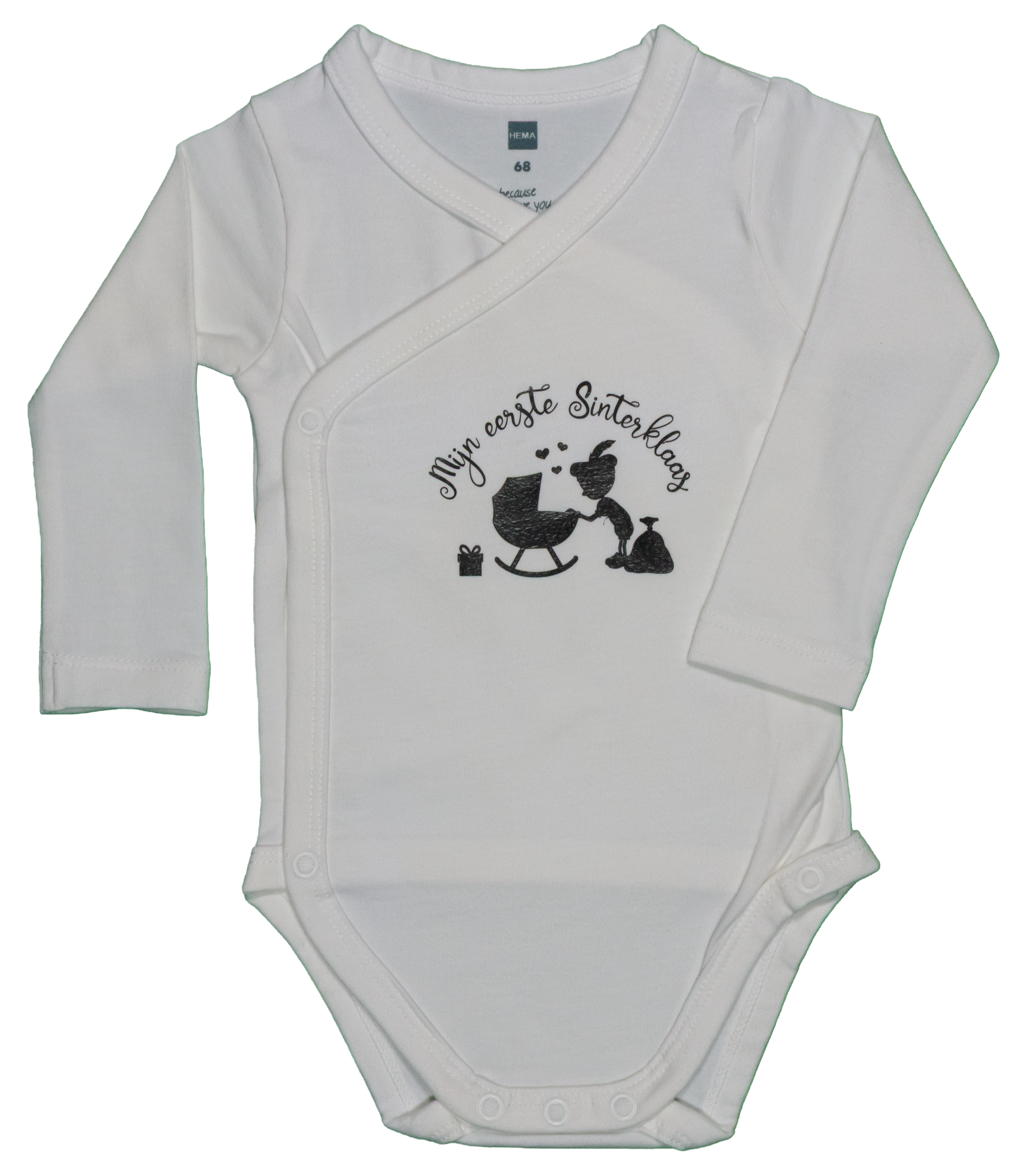 Op een wit rompertje van de Hema heb ik de sinterklaasopdruk gemaakt.