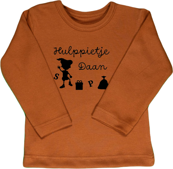Effen shirtje van Wooden Buttons, cognac bruin, korte of lange mouw.