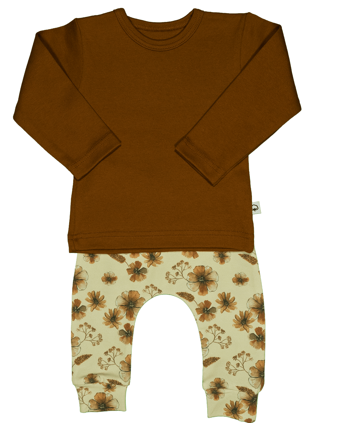 Effen shirtje van Wooden Buttons, cognac bruin, korte of lange mouw.