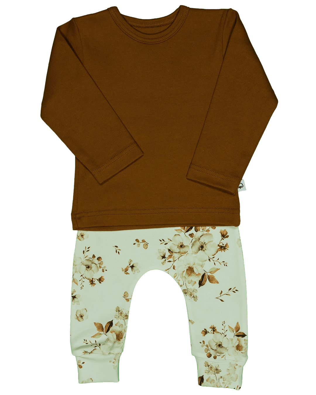 Effen shirtje van Wooden Buttons, cognac bruin, korte of lange mouw.