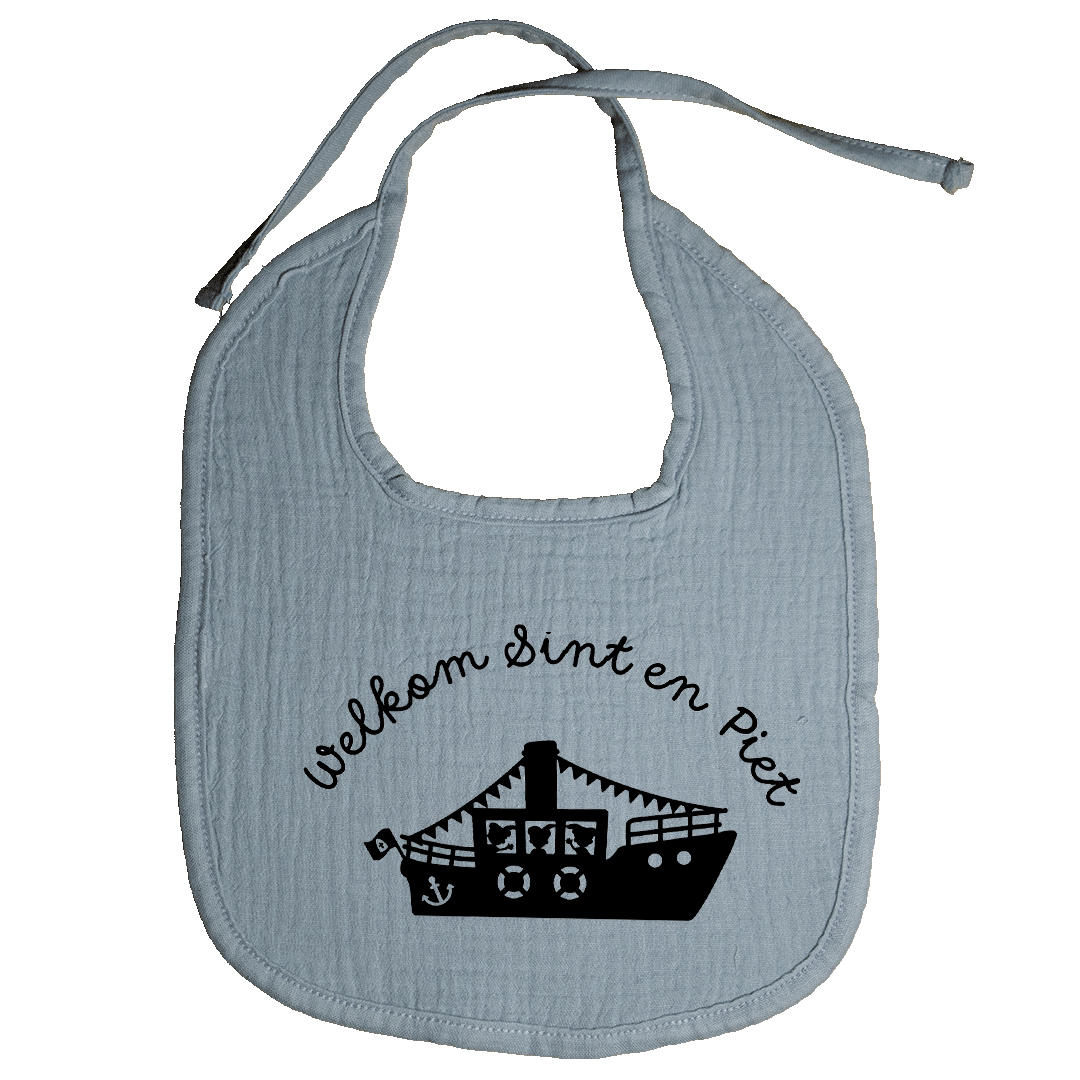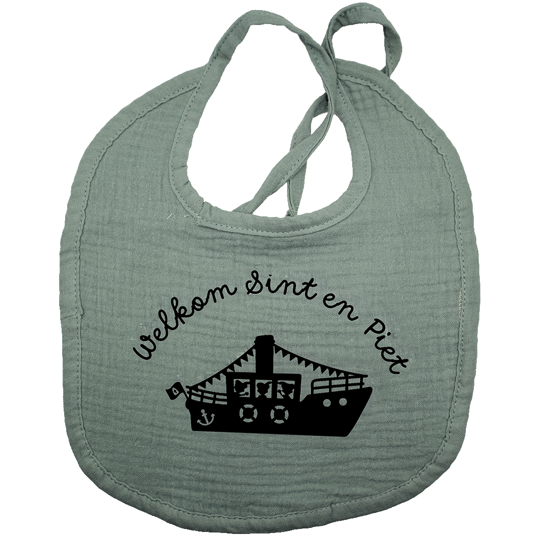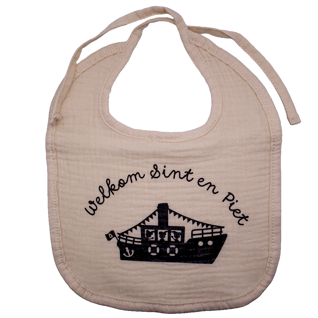 Een hydrofiel stoffen slabbetje met daarop een Welkom Sint en Piet gedrukt.