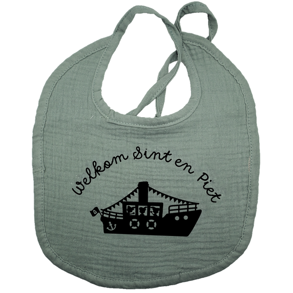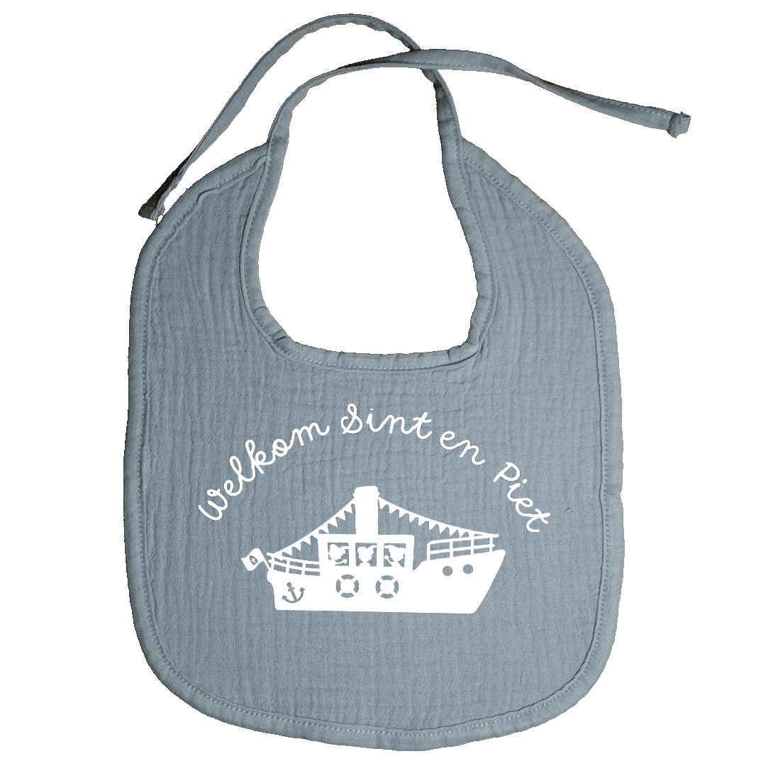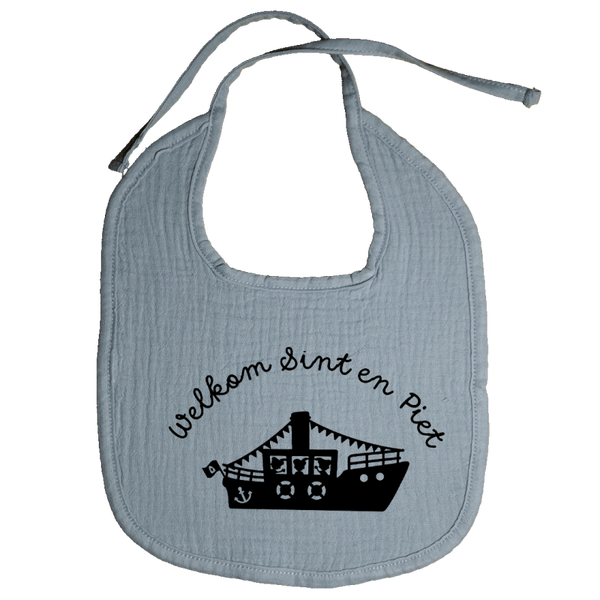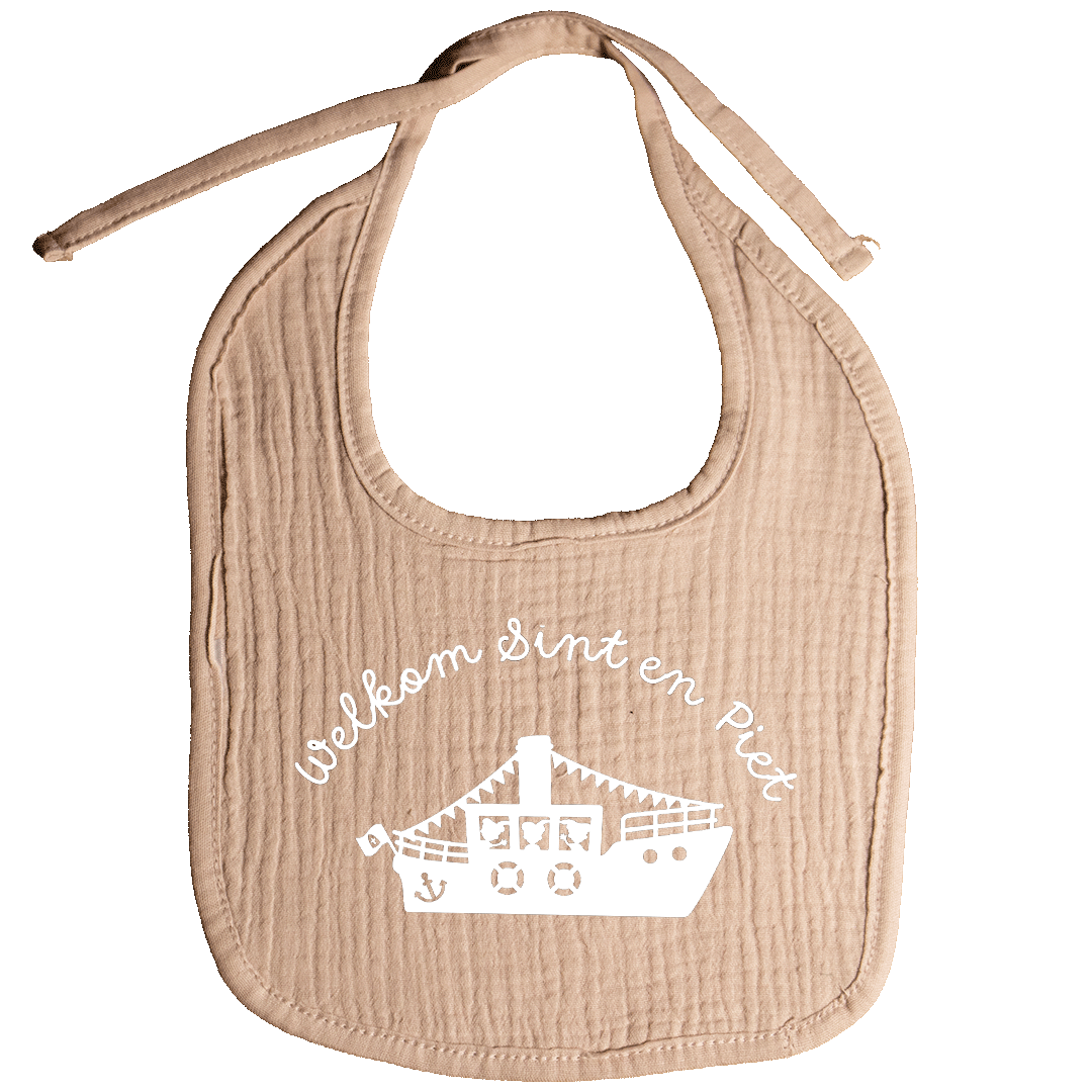 Een hydrofiel stoffen slabbetje met daarop een Welkom Sint en Piet gedrukt.