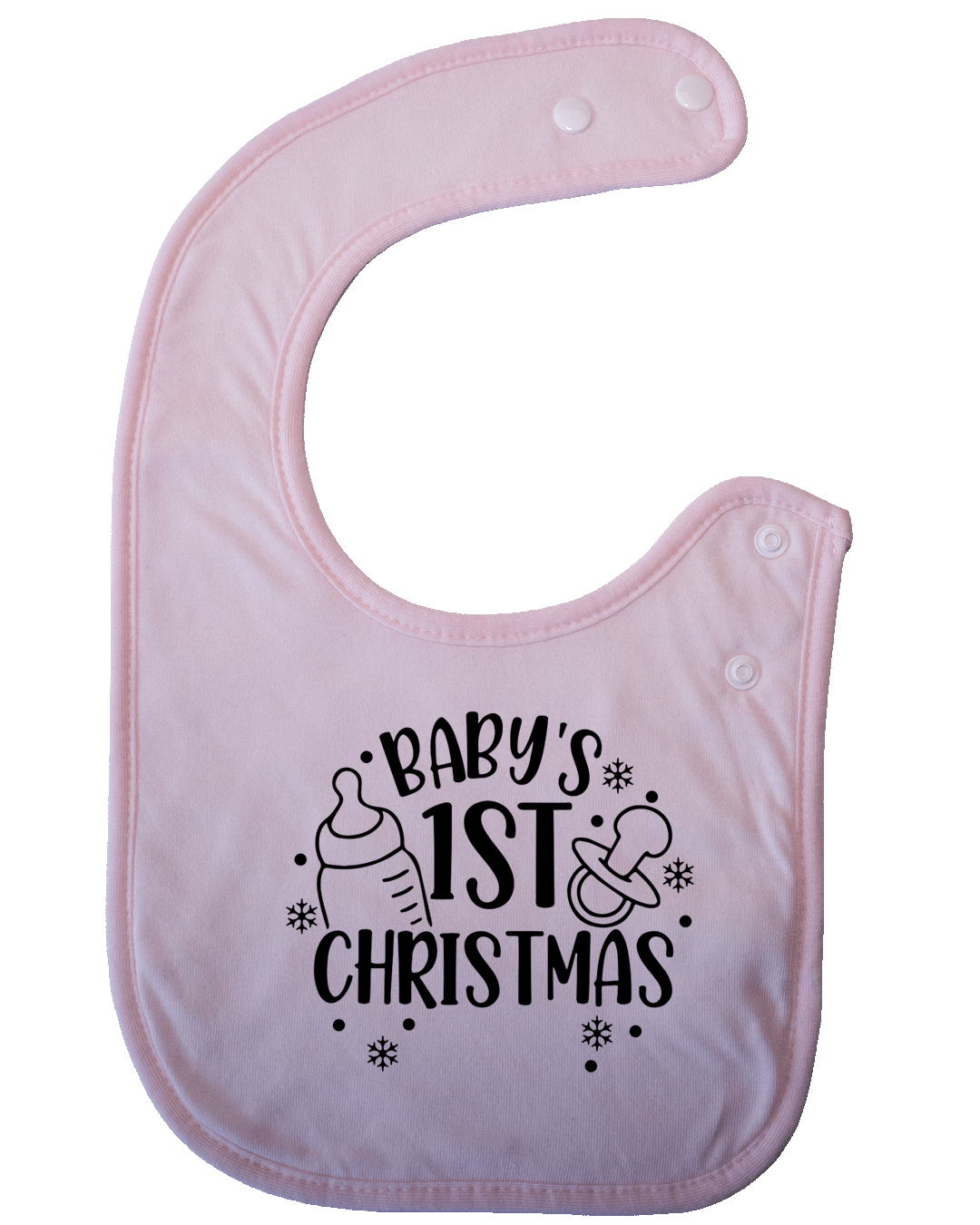 Een kwijlslabbetje van polyester, bedrukt met Baby's 1st Christmas