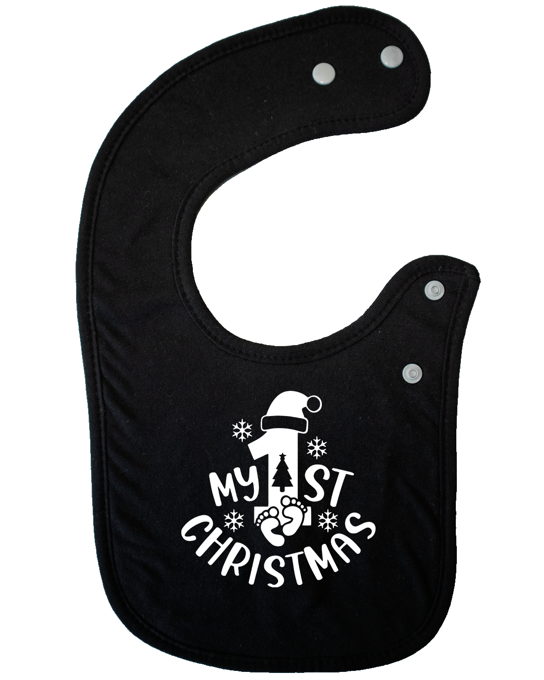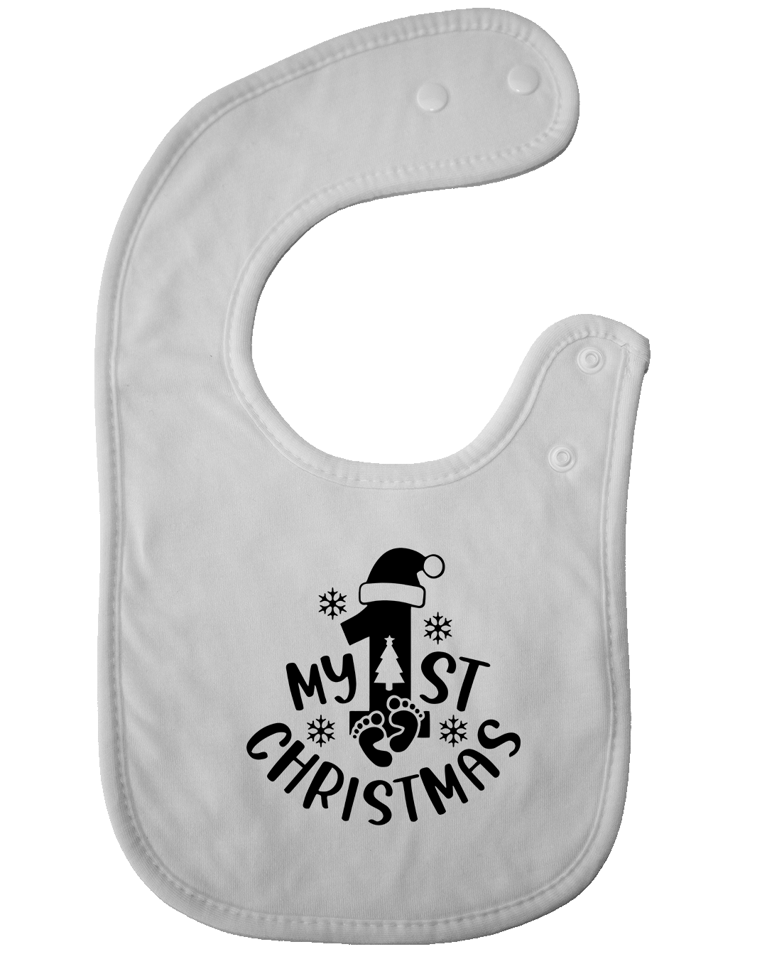 Een slabbetje van polyester met de opdruk: My 1st Christmas