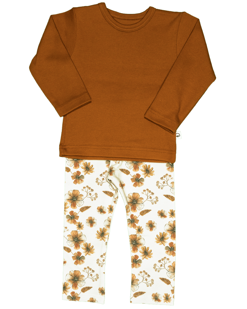 Effen shirtje van Wooden Buttons, cognac bruin, korte of lange mouw.