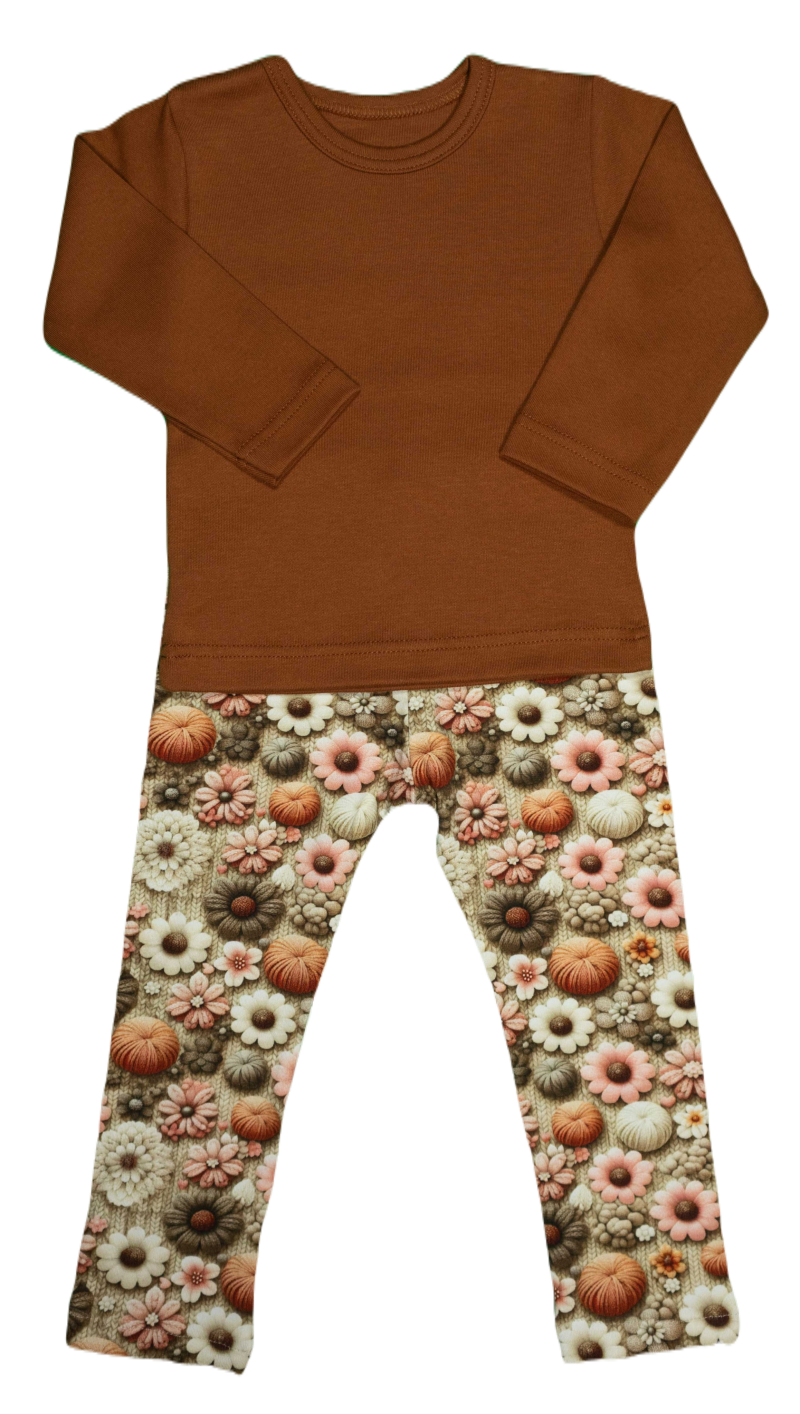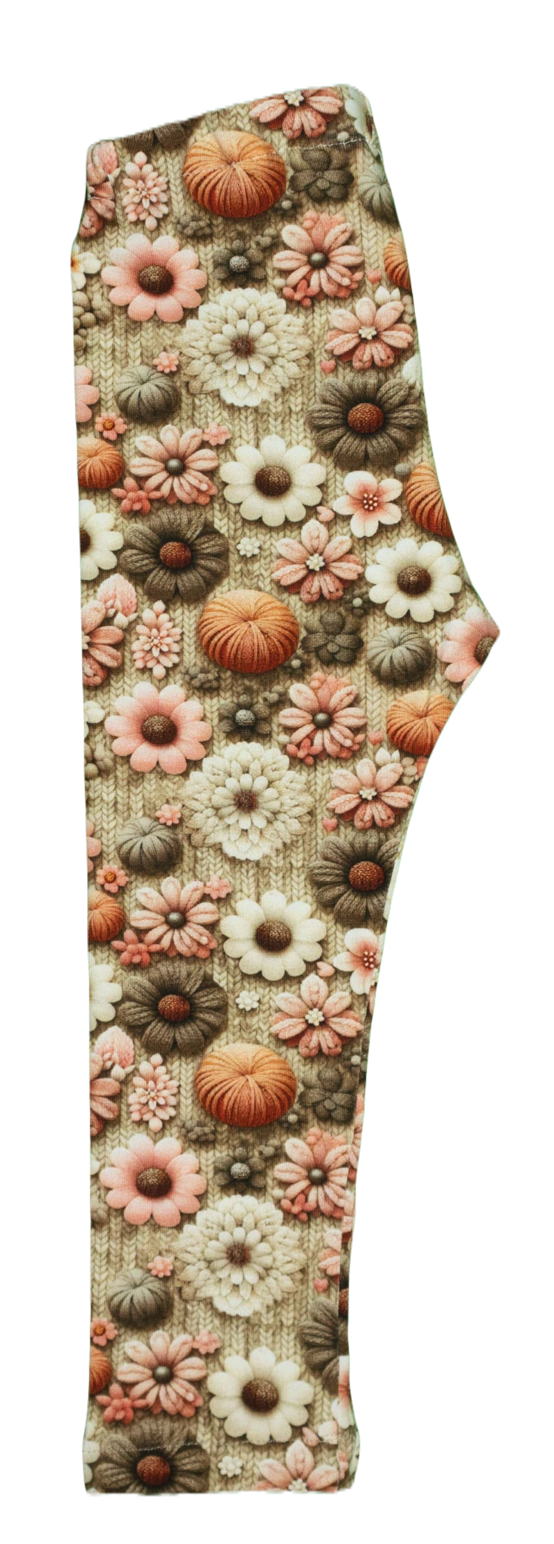 Deze tricot heeft een 3D print. Het lijkt of de bloemen bovenop de gebreide stof liggen.