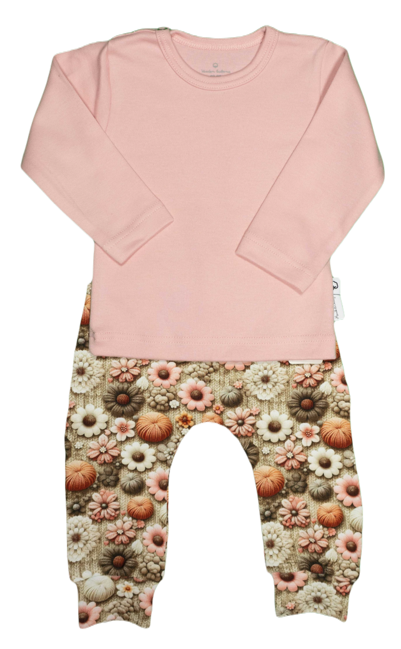 Deze tricot heeft een 3D print. Het lijkt of de bloemen bovenop de gebreide stof liggen.